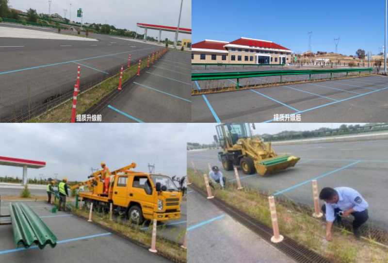 廣場“亂停車”一直是響水服務區(qū)的難題。設立硬隔離實現(xiàn)各類車輛分區(qū)管理是國內(nèi)的通用做法。2024年9月,蒙通養(yǎng)護赤峰分公司支援幫助了20余萬元,在停車廣場中間隔離帶,利用237片閑置的舊波形鋼護欄,新立119根立柱,重新組合安裝了451米隔離護欄代替原來的橡膠防撞柱,有效地阻隔車輛進行分區(qū)停泊;赤峰分公司還協(xié)調(diào)施工單位,對響水服務區(qū)補劃了40余平米的停車位標線。補劃后的各類停車位標線更加清晰,廣場車輛變得井然有序。