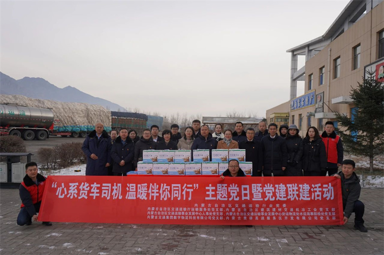 為深入貫徹習(xí)近平總書記關(guān)于交通強(qiáng)國(guó)的重要論述,促進(jìn)黨建工作和業(yè)務(wù)工作深度融合,進(jìn)一步提升交通運(yùn)輸領(lǐng)域高質(zhì)量發(fā)展。12月10日,內(nèi)蒙古交通集團(tuán)數(shù)字物流科技有限公司黨支部聯(lián)合內(nèi)蒙古自治區(qū)交通運(yùn)輸行業(yè)黨委、內(nèi)蒙古自治區(qū)交通運(yùn)輸廳運(yùn)輸服務(wù)處黨支部、內(nèi)蒙古自治區(qū)建筑建材交通機(jī)冶工會(huì)黨支部、內(nèi)蒙古自治區(qū)交通運(yùn)輸事業(yè)發(fā)展中心貨運(yùn)物流處水運(yùn)海事船檢處黨支部及人事處黨支部、內(nèi)蒙古美驛高速服務(wù)區(qū)開(kāi)發(fā)有限公司黨支部共計(jì)40余人開(kāi)展“心系貨車司機(jī) 溫暖伴你同行”主題黨日暨黨建聯(lián)建活動(dòng)。