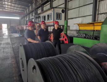 返回途中,孟國(guó)君一行還前往天津市新天鋼中興盛達(dá)有限公司與天津大強(qiáng)鋼鐵有限公司進(jìn)行調(diào)研,通過技術(shù)人員的專業(yè)講解,深入了解了鋼絞線產(chǎn)品制造工藝、生產(chǎn)規(guī)模、運(yùn)行模式等情況,對(duì)新的技術(shù)改良工藝、質(zhì)量安全檢驗(yàn)檢測(cè)等方面有了更加全面的認(rèn)識(shí)。